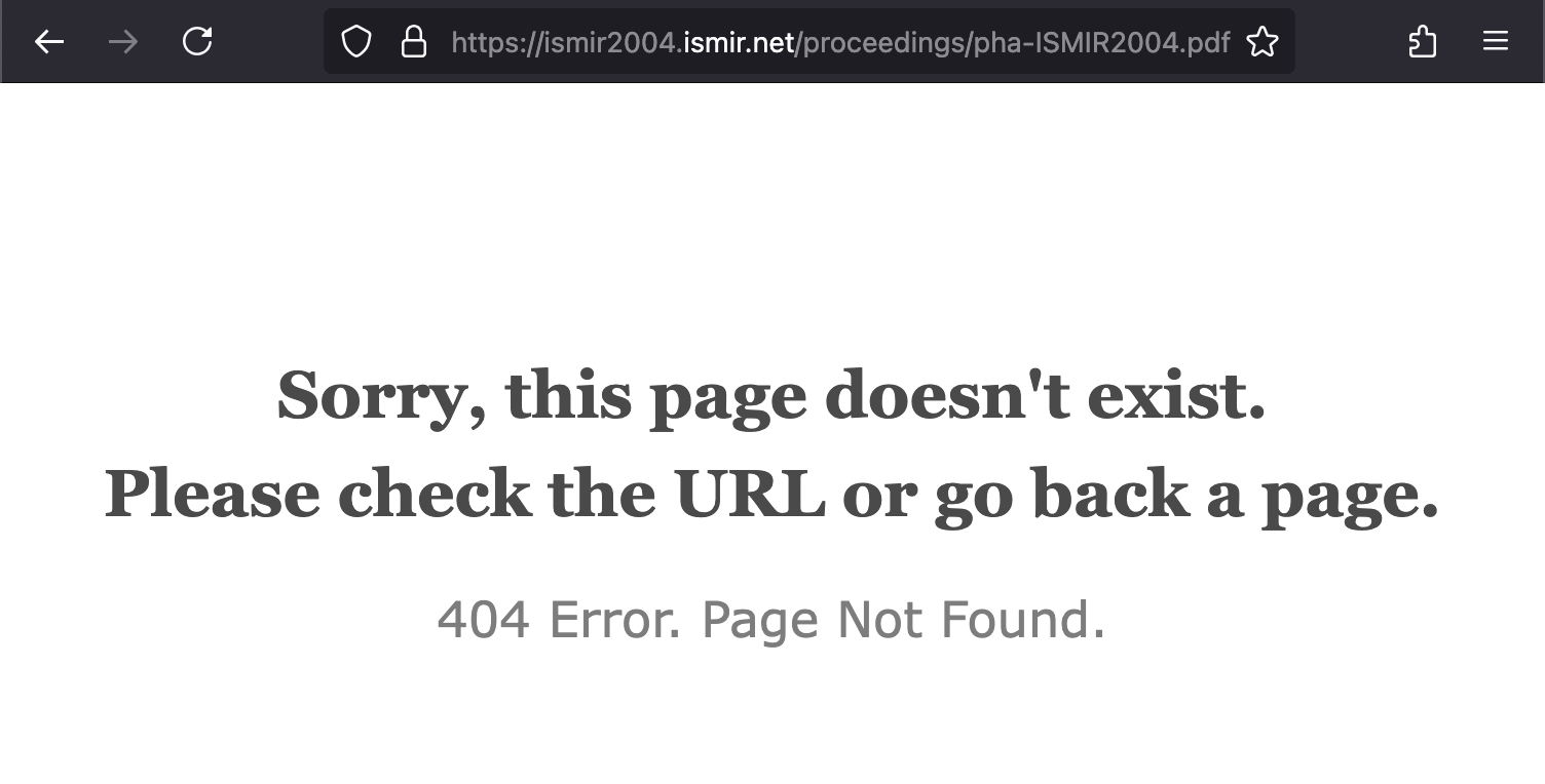 For example, the archived webpage for the ISMIR 2004 keynote speech, “Whose future is it?”, given by Phillip Aigrain, is listed on dblp’s website as: https://web.archive.org/web/*/https://ismir2004.ismir.net/proceedings/pha-ISMIR2004.pdf [29]